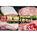 【ふるさと納税】宮崎県産 豚 ブロック 肉 4種 セット 合計3.5kg 豚肉 ロース バラ モモ ヒレ 国産 おすすめ 詰め合わせ かたまり 塊肉 ステーキ 焼肉 とんかつ 角煮 チャーシュー 晩ご飯 おかず お弁当 贈り物 ギフト 贈答 パーティー お祝い 記念日 冷凍 都農町 送料無料