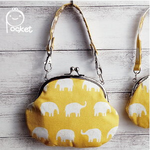 大きめ持ち手付き小銭入れ/お財布バッグがま口ポーチ / 小銭入れ(中)/カードケース/名刺入れがま口財布かわいいがま口ポーチ【象 ぞう イエロー】がま口ポーチ持ち手は取り外し可