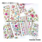 宝石シール パール 【8枚セット】 ぷっくり ビジュー ハートジュエル 象 立体 ジュエルステッカー 馬 花 キラキラ ご褒美シール デコレーション