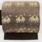 美品 名古屋帯 逸品 落款あり 紬地 象 草花 絞り 焦茶色 正絹 中古