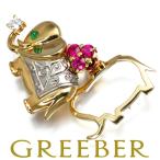 ウォルサム ブローチ ルビー 0.23ct ダイヤ ダイヤモンド 0.06ct エメラルド 象 ゾウ スウィング K18YG/WGBLJ/GENJ