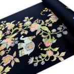 名古屋帯 岡重 黒地 象 花唐草 唐花 更紗 最塩瀬 友禅染 新品 未仕立て 九寸 お洒落着 街着 カジュアル おしゃれ かっこいい か No.88-1544