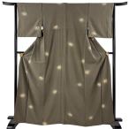 小紋 身丈166.5cm 裄丈64.5cm M 袷 貝合わせ 草花 金彩 ぼかし 茶緑色 正絹 秀品 中古