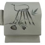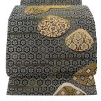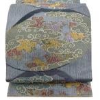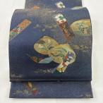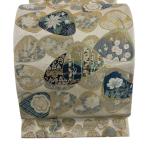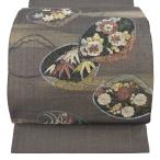 美品 袋帯 秀品 貝合わせ 梅 金糸 箔 茶紫 お太鼓柄 正絹 中古