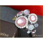 シェル(母貝)ピンク・イエロー・ホワイト サークルが重なり合う立体感 K18WGホワイトゴールド リング 指輪 受注品