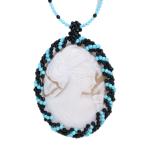 シェルカメオを ターコイズ(トルコ石)&オニキス 取り巻きの個性的ネックレス SVシルバーチェーン単体で着用可 1点もの