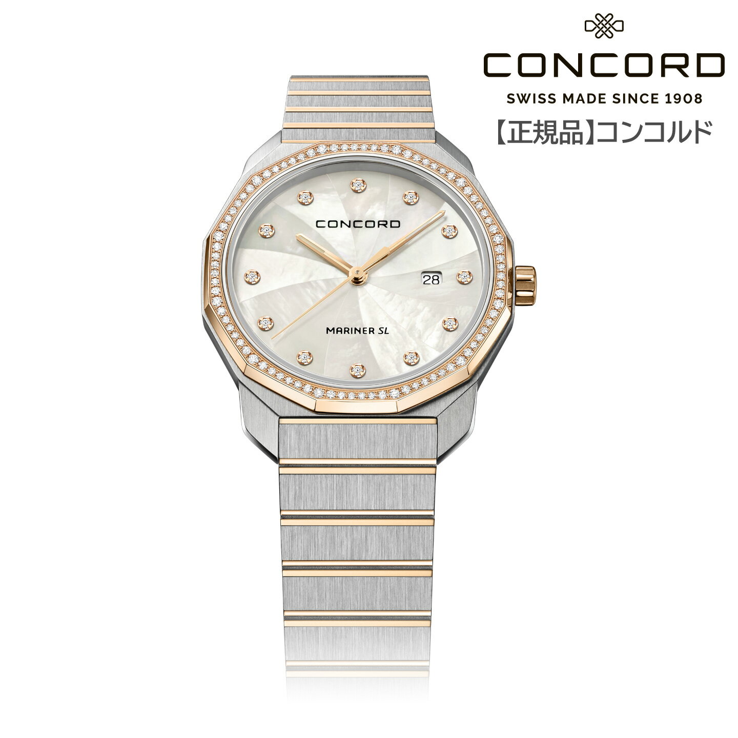【コンコルド 正規輸入品】MARINER SL マリナーSL 30mm レディース ステンレススチール K18 ピンクゴールド 天然 ダイヤモンド MOP 白蝶貝 文字盤 クオーツ式 スイス製