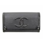 シャネル CHANEL カンボンライン 二つ折り 長財布 ココマーク 長財布 レザー ブラック シルバー レディース 中古