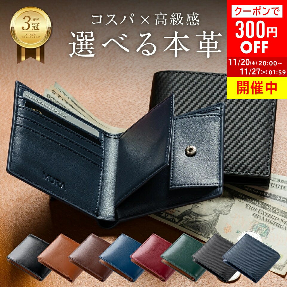 \クーポンで300円OFF♪/【SALE】MURA 公式【ツヤ感抜群コードバン調牛革】財布 メンズ 二つ折り 本革 薄型 大容量 ポケット レザー カーボンレザー レディース 革 牛革 コンパクト 二つ折り財布 折りたたみ カード 黒 軽量 コードバン 送料無料 大容量 2つ折り box型