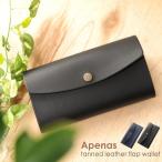 [期間限定価格]財布 レディース 長財布 本革 牛革 ヌメ革 一枚仕立て フラップ デザイン ネイビー /ブラック [名入れ 可能](No.07000274) 金運