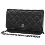 シャネル CHANEL ココマーク チェーン ウォレット 財布 ショルダーバッグ レザー ブラック レディース 中古