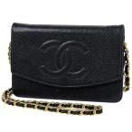 シャネル CHANEL ココマーク チェーン ウォレット 財布 ショルダーバッグ キャビアスキン ブラック レディース 中古