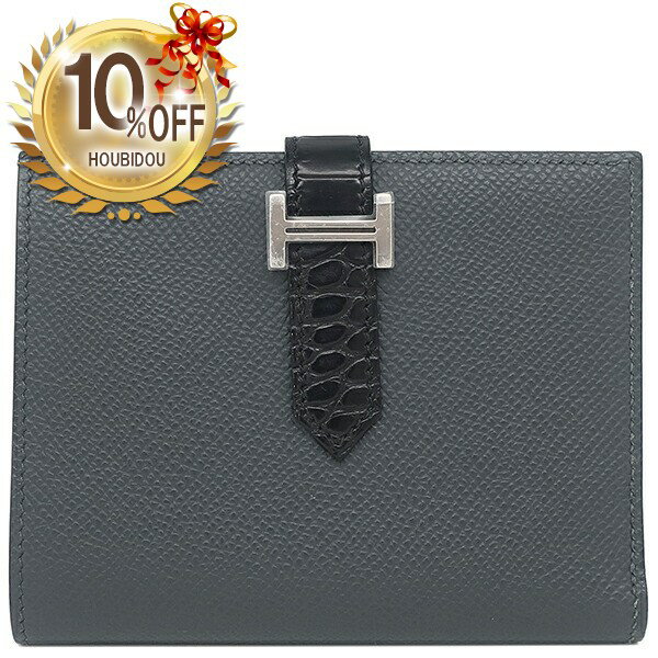 \10%OFFセール/ エルメス HERMES 二つ折り財布 ベアンコンパクト タッチ ヴォーエプソン アリゲーター グリミスティ×ブラック シルバー金具 黒 クロコ W刻印(2024年製) 【箱】【中古】