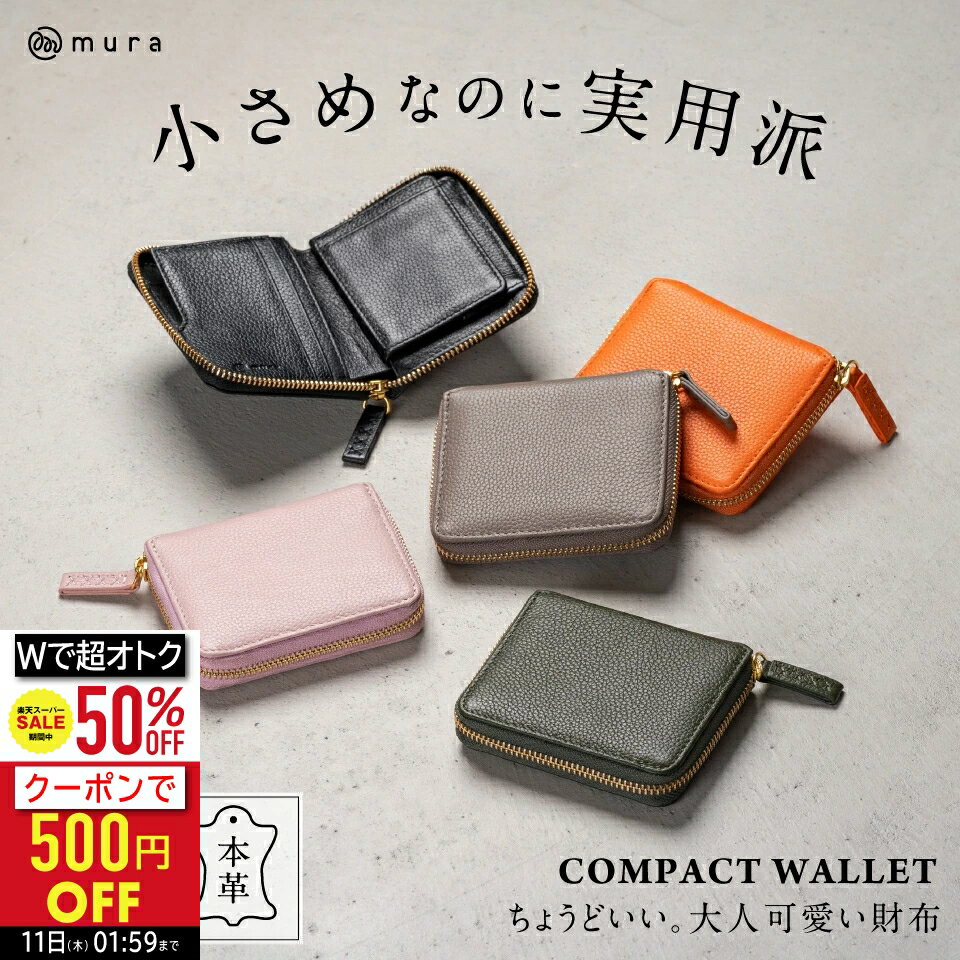 \クーポンで500円OFF♪/財布 二つ折り ファスナー ラウンドファスナー スクエア レザー レディース 革 小さめ コンパクト 二つ 折り財布 スキミング防止 カード ボックス型小銭入れ 小さい メンズ 2つ折り ミニ財布 ギフト 誕生日 プレゼント 保障付 MURA公式