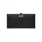 エルメス HERMES ベアンスフレ ヴォーエプソン ブラック イエローゴールド金具 K刻印 未使用 財布 レディース