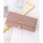 財布 レザー調 リーフ モチーフ付き 三つ折り 長財布 レディース