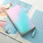 クロコダイル パステルカラー グラデーション デザイン ラウンドファスナー 長財布 マット 鰐革 本革 財布 (06001906r)
