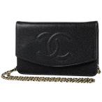 シャネル CHANEL ココマーク チェーン ウォレット 財布 ショルダーバッグ キャビアスキン ブラック レディース 中古