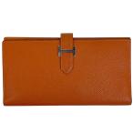 エルメス HERMES ベアン Hロゴ 二つ折り 長財布 ヴォーエプソン テールバテュー □R レディース 中古