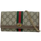 グッチ GUCCI オフィディアGG 二つ折り 長財布 チェーンウォレット シェリーライン ウェブ 長財布 コーティングキャンバス ブラウン レディース 中古