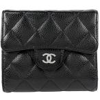 シャネル CHANEL ココマーク 長財布 マトラッセ 二つ折り 長財布 キャビアスキン ブラック レディース 中古