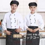 コックコート メンズ レディース 男女兼用 コック服 調理服 2点セット エプロン 長袖 制服 パン屋 ケーキ屋 飲食 レストラン 高級感 パン屋