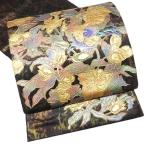 \ FINAL PRICE / 袋帯 未使用 正絹 フォーマル 螺鈿箔 箱付き 螺鈿工芸士 岡島良山 鳥の図 引箔 黒色 金 きもの北條 A1223-8