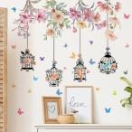 ウォールステッカー 花 植物 木 枝 北欧 おしゃれ 鳥 蝶 ピンク 赤 黄色 青 鳥かご グリーン はがせる 鳥籠 シール 壁紙 葉っぱ 和風 柄 ナチュラル vr03051