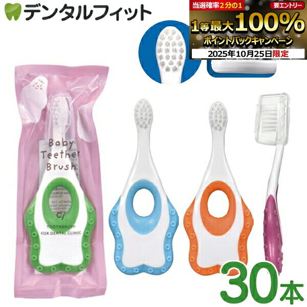 【★エントリーと店内3点購入でP10倍(10/24 20:00-10/27 9:59迄)】Ciベイビーティーザーブラシ 1箱(30本) やわらかめ 4色アソート 歯の生え始めの自分磨きに 対象5か月〜4歳 ラバーハンドル キャップ付き 歯がため ベビー歯ブラシ 赤ちゃん 【送料無料】