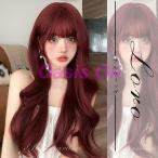 ウィッグ フルウィッグ 赤 赤髪 ワインレッド ロング 巻き髪 ぱっつん前髪 前髪あり 可愛い かわいい 大人用 コスプレ ロリータ ゴスロリ