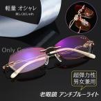 老眼鏡 レディース おしゃれ 縁なし ブルーライトカット 度数100-400 パソコン PCメガネ 40代 50代 60代 女性 敬老の日 父の日 母の日 プレゼント 老眼レンズ