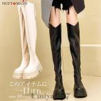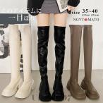 ニーハイブーツ 厚底 ブーツ レディース 太めヒール プラットフォーム ロングブーツ PU バックジッパー ストレッチ 美脚 おしゃれ 履きやすい カジュアル 白 黒