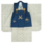 七五三 男の子 3歳 被布着物セット オフホワイト 矢絣柄 被布青紺色 刺繍半襟に足袋付きセット 日本製