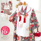 七五三 着物 3歳 女の子 「白×黒 菊、牡丹」 三歳女児被布セット 子供着物 フルセット 三才のお祝い着 3才向け (メール便不可)