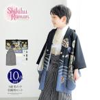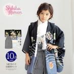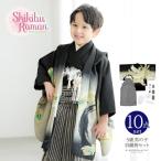七五三 着物 男の子 5歳 羽織袴セット 「黒 兜に片輪車」 フルセット 5歳向け 5才 五歳 男児用 着物セット 子供着物 五才のお祝い着 (メール便不可)