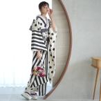 振袖 レンタル 成人式 21点セット utatane ベージュ 黒 村田倫子ちゃん着用 半身 大粒ドットとモダン縞々 オフホワイト×ブラック