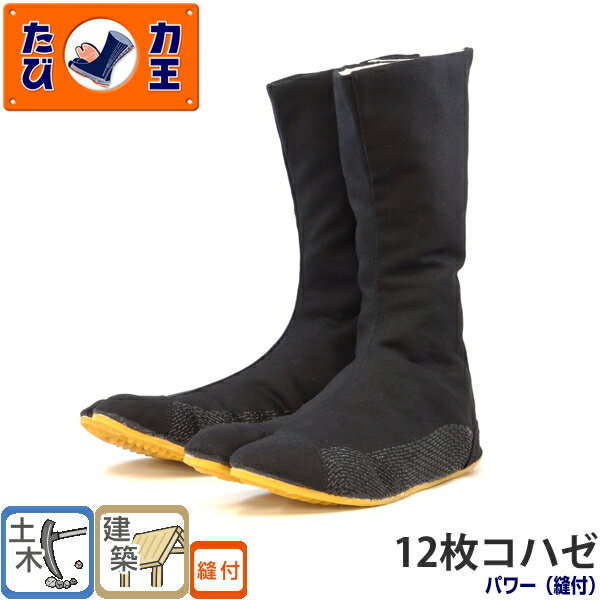 \まとめ買い5%OFF/力王(RIKIO) 作業用縫付地下たび パワー PW12(12枚コハゼ) 黒 24.0〜28.0cm 地下足袋・土木作業・建築作業
