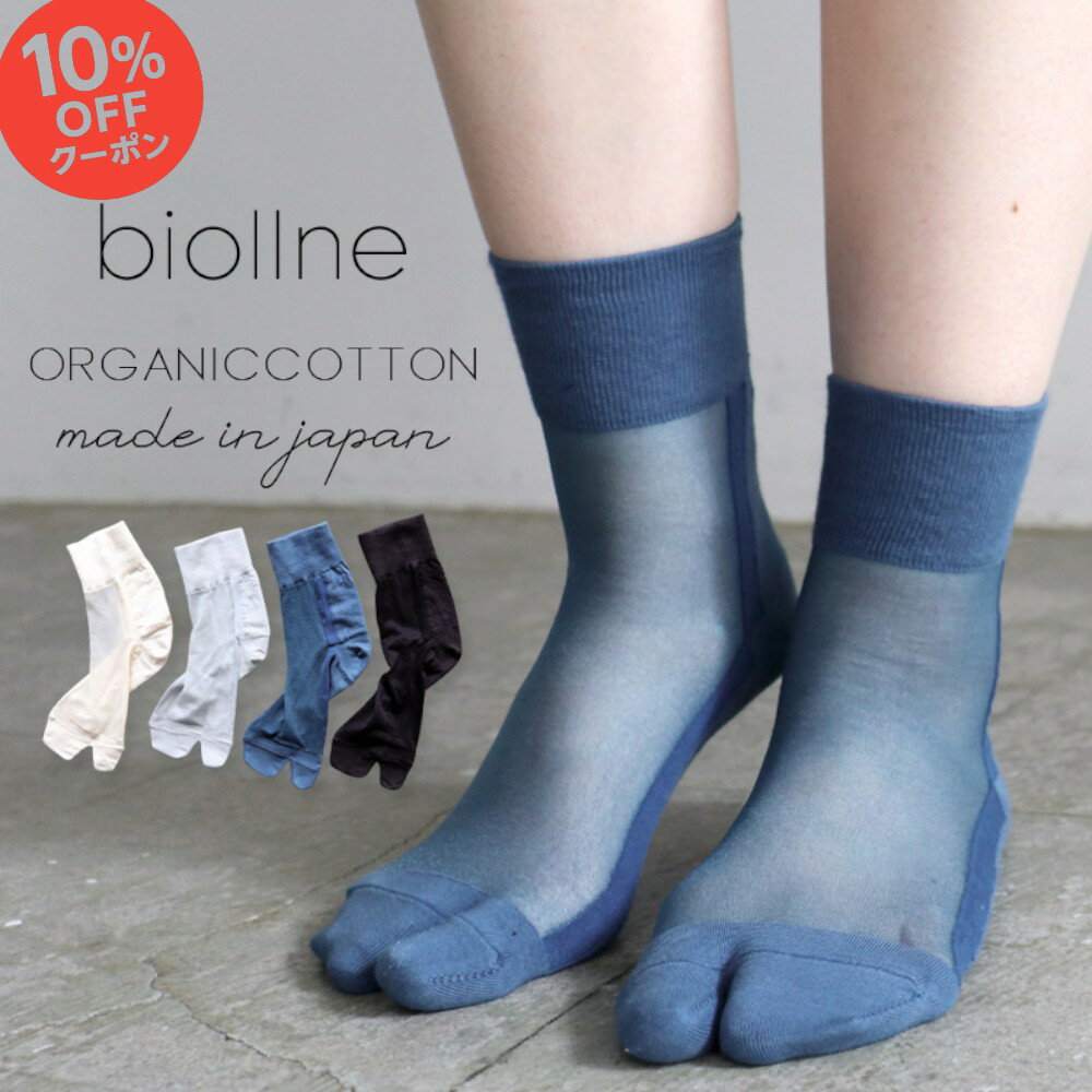 【10%OFFクーポン&ポイントアップ】シースルー 足袋ソックス 夏用 薄い 靴下 シアー ソックス おしゃれ オーガニックコットン レディース 薄手 綿 くつ下 2本指ソックス 女性用 ショート丈 ブランド プレゼントbiollne ビオルネ日本製 足袋 シアーソックス 351100