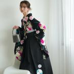 袴 レンタル 卒業式 2尺袖着物 袴 17点セット 紅一点 レトロ モダン 袴セット 花 黒系