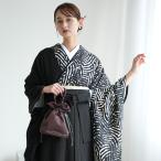 袴 レンタル 卒業式 utatane 袴 17点セット 半身 ジオメトリック×ブラック 二尺袖着物 大学生 レディース 袴91cm 95cm 重ね衿縫い付済 白 黒 アシンメトリー