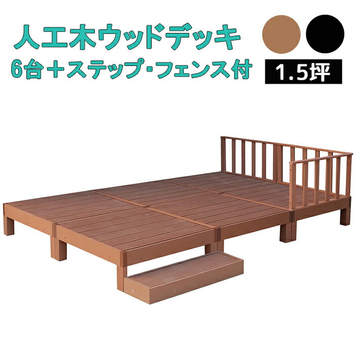 [☆7%offクーポン発行中☆-12/04まで] ウッドデッキ 6台 ステップ フェンス付き 1.5坪 人工木製 踏み台 ウッドテラス 劣化しにくい ガーデンデッキ
