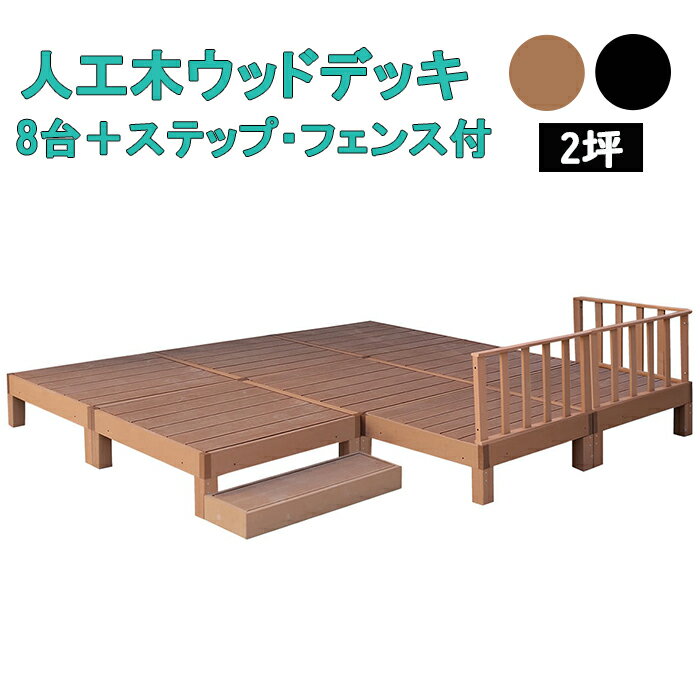[☆7%offクーポン発行中☆-12/04まで] ウッドデッキ 8台 ステップ フェンス付き 2坪 人工木製 踏み台 ウッドテラス 劣化しにくい ガーデンデッキ
