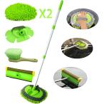 【並行輸入品】62インチ 洗車ブラシキット ミットモップスポンジ ロングハンドル付き シェニール織 傷のつきにくい交換用ヘッド 車のホイールタイヤブラ