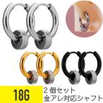 2個セット 模様 彫り メタル ビーズ ワンタッチ リング ピアス 18G 軟骨ピアス ボディピアス サージカルステンレス フープ 着脱簡単 キャッチレス クリッカー
