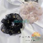 シュシュ ハート柄 オーガンジーシュシュ ヘアゴム おしゃれ ヘアアクセサリー オーガンジー ゴム輪 水玉柄 キラキラ 髪飾り レトロ 髪留め