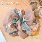 シュシュ ヘアゴム レディース ヘアアクセサリー ゴム輪 花柄 ヘアゴム バイカラー ボリューム ポニーテール 髪留め おしゃれ 髪飾り 通勤