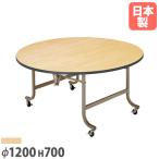 法人送料無料 フライトテーブル 丸型 直径1200mm ソフトエッジ巻 キャスター脚 レセプションテーブル 会議用テーブル 会議室 結婚式 完成品 日本製 LL-1200R
