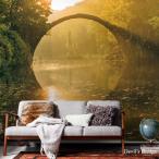 輸入壁紙 壁紙 のり付き おしゃれ クロス 紙 内装 撮影 ドイツ製 補修 クロス 店舗 内装 リビング トイレ 玄関 模様替え リフォーム 撮影用 ウォールペーパー緑 自然 森 橋 湖 [デビルズブリッジ] SH037-VD4 友安製作所 C-F-1