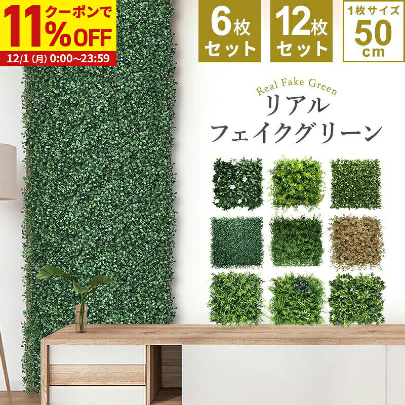 【11%OFFクーポン配布中★12/1に使える】 グリーンフェンス インテリアグリーン リアル 葉っぱ 壁掛け 庭 玄関 オフィス 目隠しフェンス フェイクグリーン おしゃれ 1m×3m 1枚50cm×50cm 6枚セット 12枚セット 連結 目隠し ベランダ