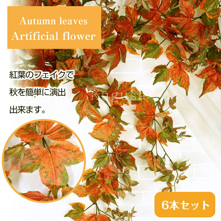 \アフターセール 5%offクーポン/ 紅葉 ガーランド 6本 ハロウィン 秋 造花 飾り ディスプレイ 装飾 季節 インテリア 葉っぱ 楓 かえで ホーム デコレーション 秋色 もみじ 人工 観葉植物 感謝祭 撮影 舞台 枯れない 壁掛け 吊り下げ 結婚式 Kugusa